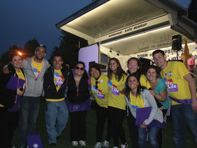 Relay For Life events are held overnight as individuals and teams camp out in tents on the campus’s intramural fields, with the goal of keeping at least one team member on the track or pathway at all times throughout the evening.